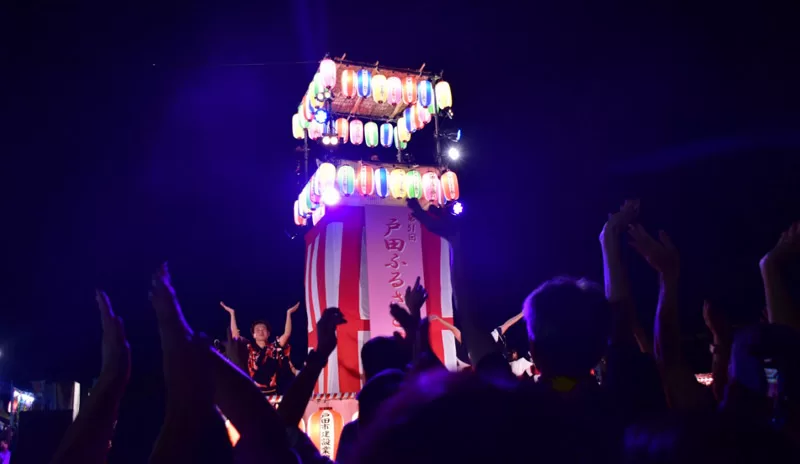 市役所駐車場に設営したやぐらを中心に、盆ジョヴィをはじめとしたイベントの他、和太鼓・流し踊り・神輿、美味しい屋台の数々、そして来場者の皆さまの楽しそうな笑顔により、戸田の魅力が詰まった2日間となりました。まさに「ふるさと戸田」の絆を感じられる素晴らしい時間となりました。